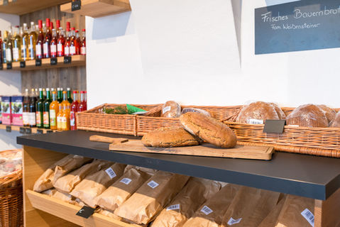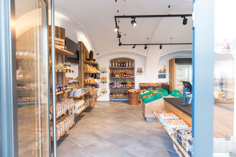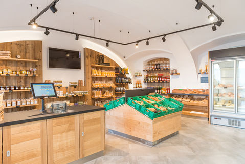 Zum Angebot gehören Brot & Gebäck, Mehlspeisen, Obst & Gemüse, Fleisch- und Milchprodukte, Eierteigwaren und Öle bis hin zu Säften, Spirituosen, Gewürzen, Marmeladen sowie Knabbereien und Geschenkideen.
